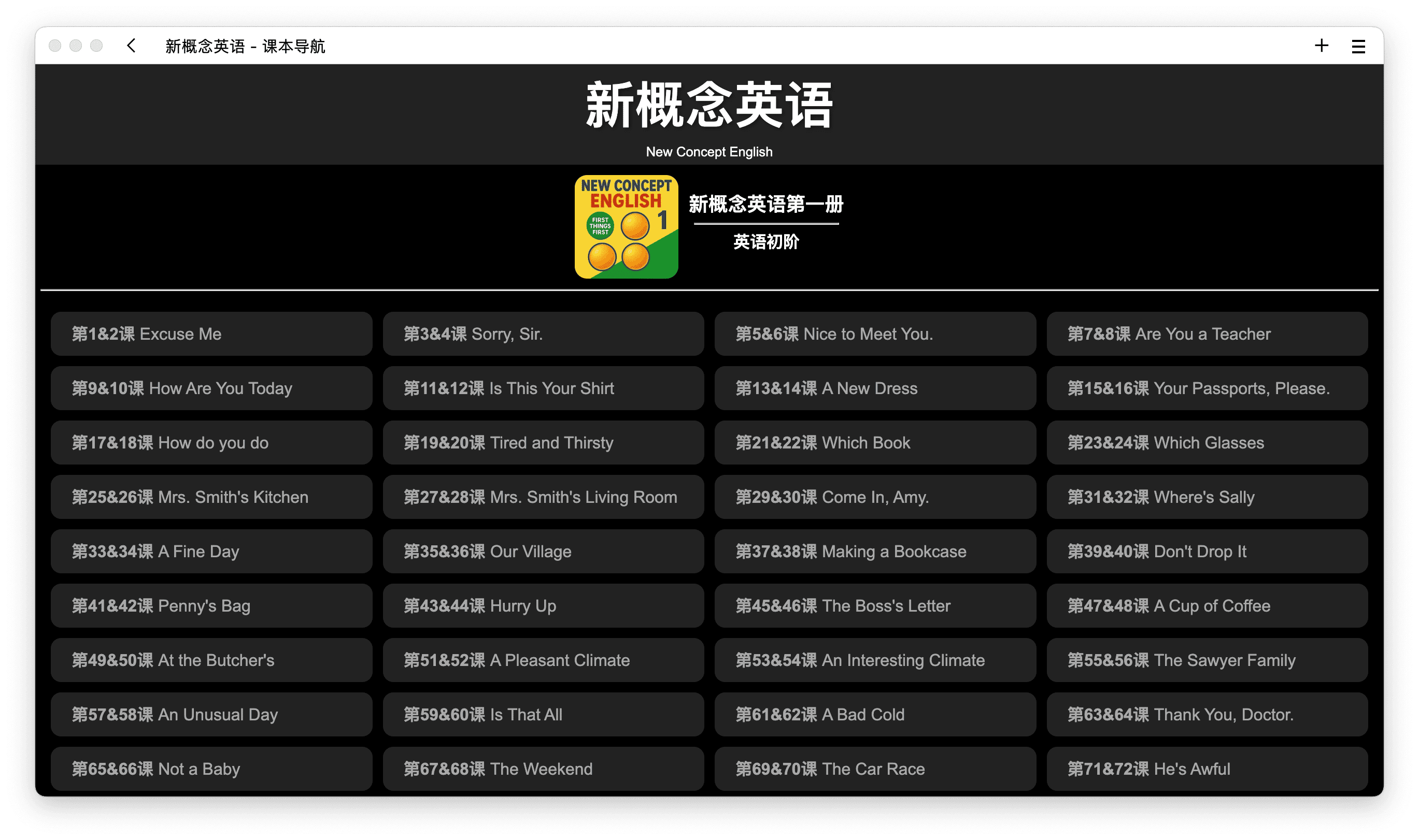39、NCE:《新概念英语》全四册在线课文朗读。该项目为《新概念英语》学习者提供了一个方便的在线学习平台,结合美式发音音频与 Gemini AI 生成的中文字幕,支持课文朗读与单句点读。