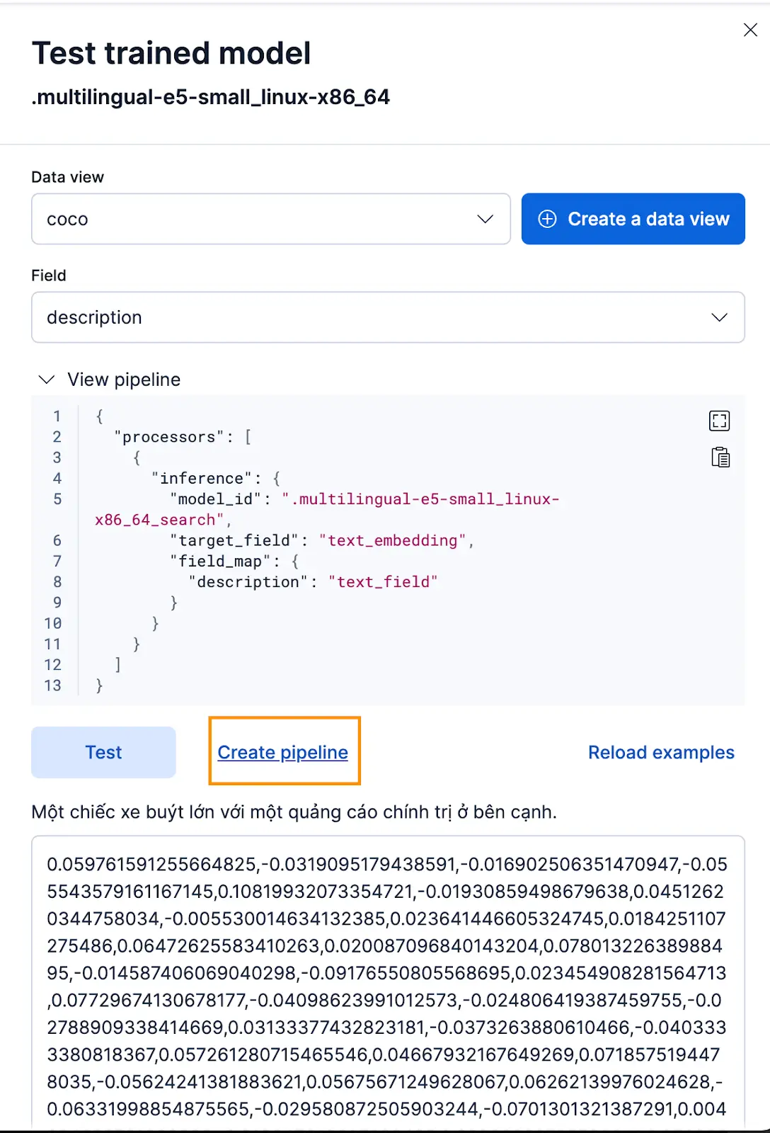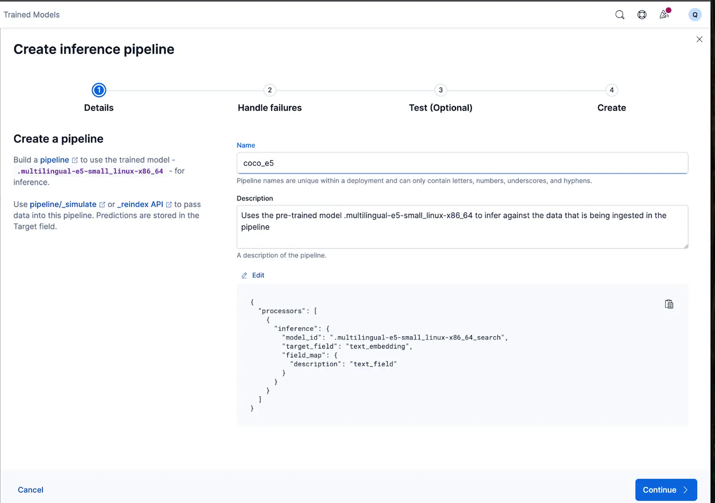 现在让我们创建 ingest pipeline,我将其命名为 coco_e5。