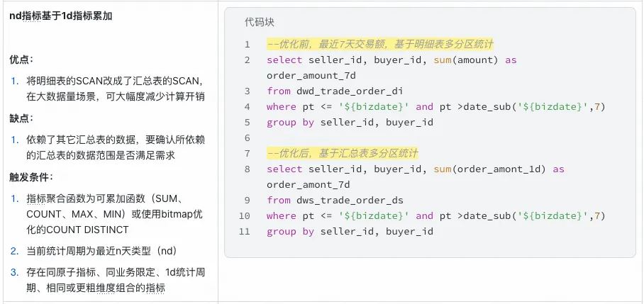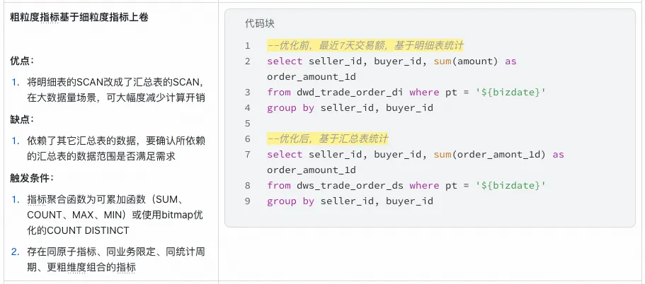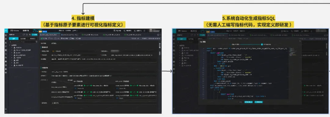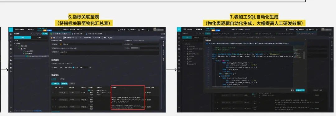 - 提升开发效率:数据工程师无需重复构建维度表和基础事实表,直接复用数仓公共层的成果;同时指标原子要素定义完成后,指标和汇总表的代码全部可以系统自动化生成和优化,大幅提高效率,也减少出错的可能性。