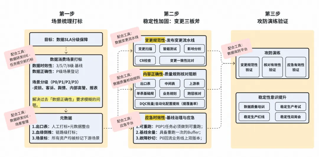 然而过往数仓的数据交付只是停留在快速提供数据以发挥业务价值这一步,业务和研发对数据质量和稳定性保障重视度严重不够,并且没有明确生产变更和数据质量校验的SOP,同时也没有健全的工具体系支撑,全靠数据工程师的自我修养,导致历史上很多核心数据加工任务没有保障或者保障不全面,不断引发P级故障。