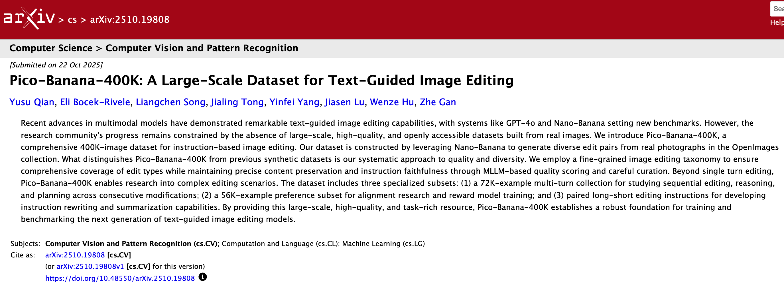 苹果发布 Pico-Banana-400K 数据集,助力文本引导图像编辑研究