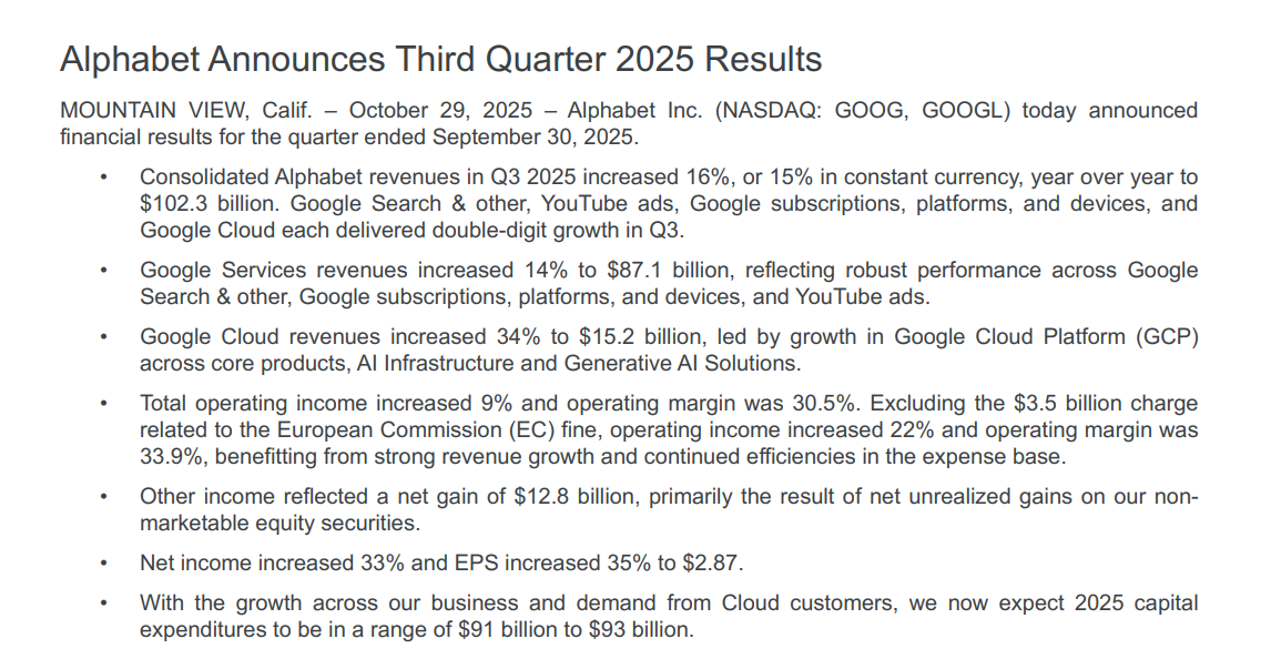 谷歌的母公司 Alphabet 日前公布了第三季度财报,展示了其核心广告业务和云计算部门的稳健增长,首次实现季度收入突破1000亿美元。尽管公司宣布将超出先前预期的数十亿美元进行支出,但投资者仍感到兴奋,股价在盘后交易中上涨。