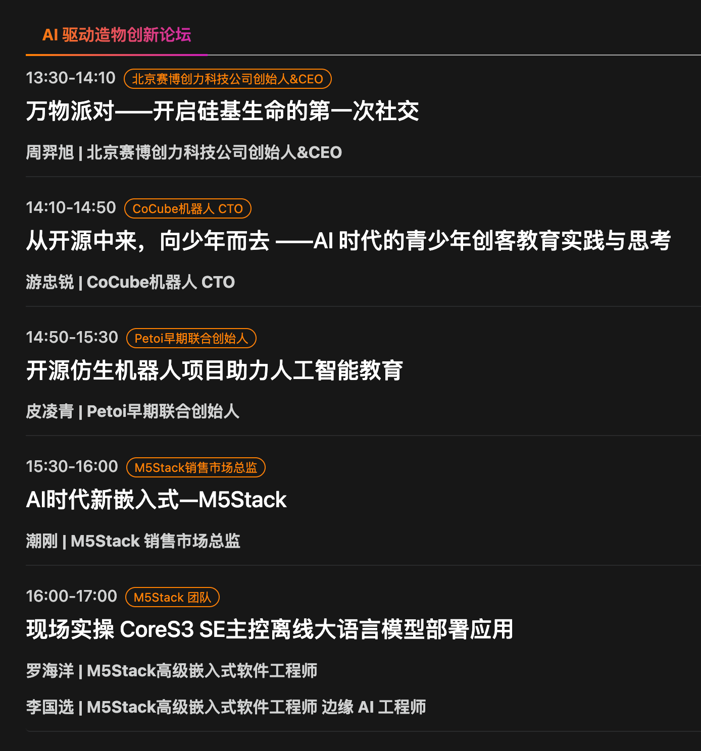 论坛聚焦 AI 技术驱动下的创意实践与创新项目,展示大模型、AIGC 与开源工具在开发者、创客与企业中的实际应用。议题涵盖技术实现案例、工具链应用、创意开发方法、跨界协作与落地经验等内容,强调动手实践与成果展示。
