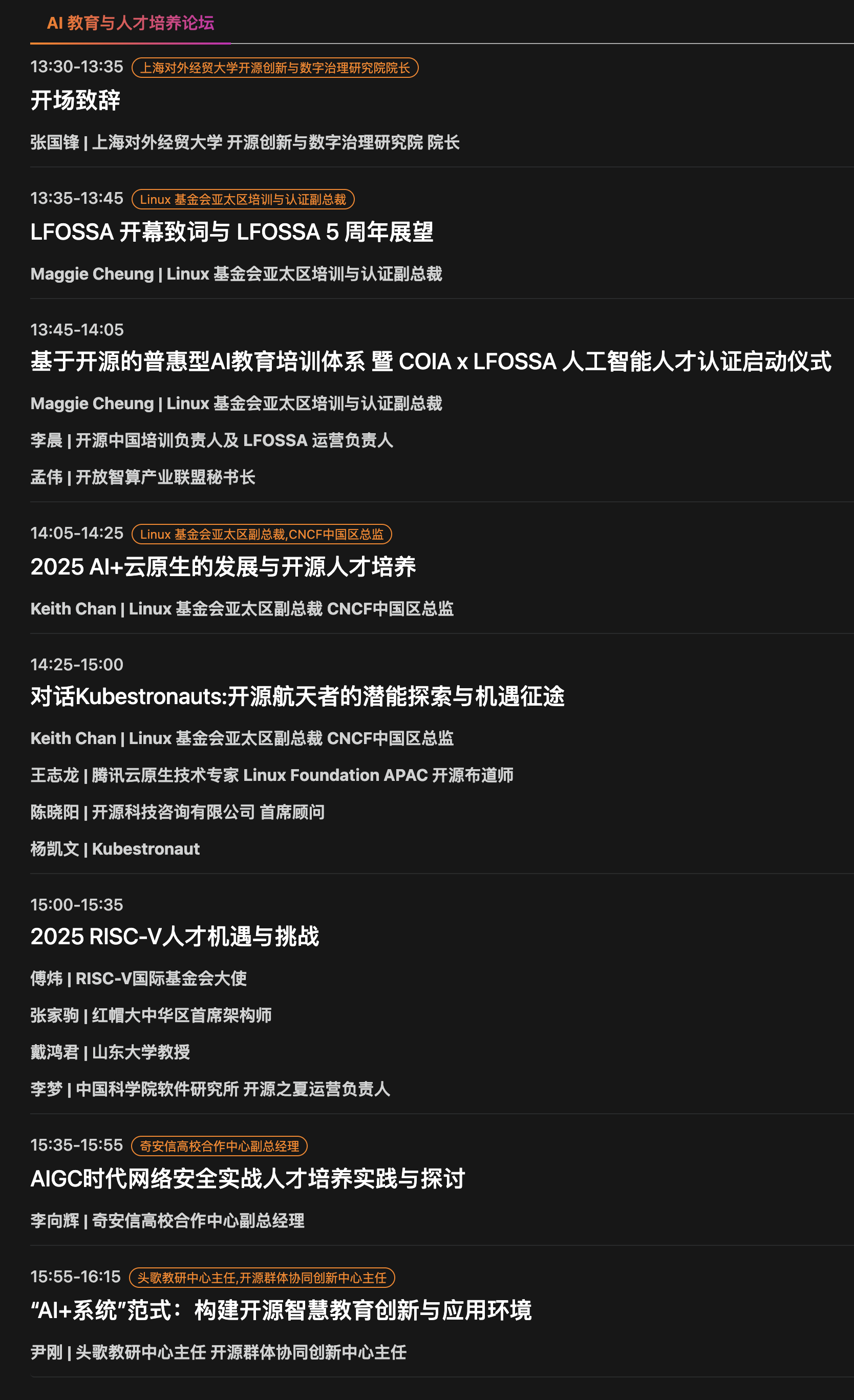 在 AI 技术与产业加速融合的背景下,人才已成为驱动创新与可持续发展的核心引擎。本论坛将聚焦 AI 与开源教育,深入剖析企业在 AI 人才招聘及培养的挑战与趋势,探讨开源生态在技能提升与实践锻炼中的价值。论坛议题将涵盖 AI 与云原生技术的协同发展、RISC-V 架构在开源创新中的应用,以及網絡安全与合规的重要性,全面呈现开源技术在产业落地中的关键作用。论坛还将结合行业案例,分享课程体系建设、认证路径规划及产学协同机制,助力组织打造面向未来的人才战略框架,将人才优势转化为业务增长动力。