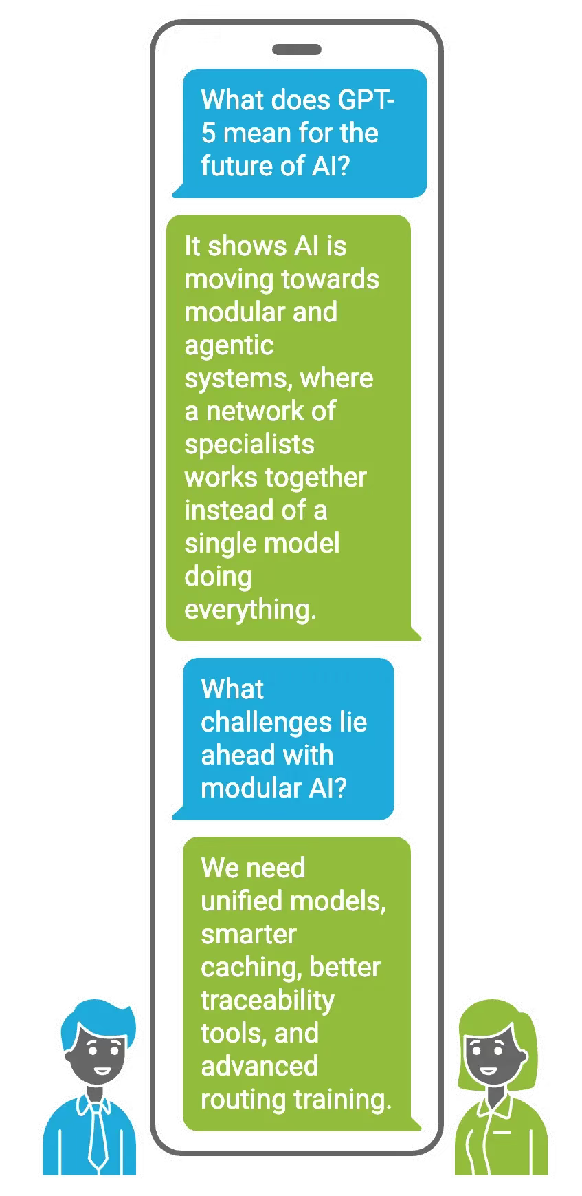 GPT-5 的"路由器 + 多模型"架构讲述了一个更大的故事:AI 正在告别"一刀切"的单一模型时代。研究人员长期以来一直在探讨模块化与 Agentic AI,而 GPT-5 正是这一转变正在发生的最清晰例证之一。正如某份分析所言,GPT-5 的"多智能体架构(路由器 + 模型)"暗示了我们未来可能会如何设计模块化的 AI 系统,来突破单一模型的局限。用通俗的话说,未来大语言模型系统将由专家网络构成,而不是依赖一个"全能的"通用模型。