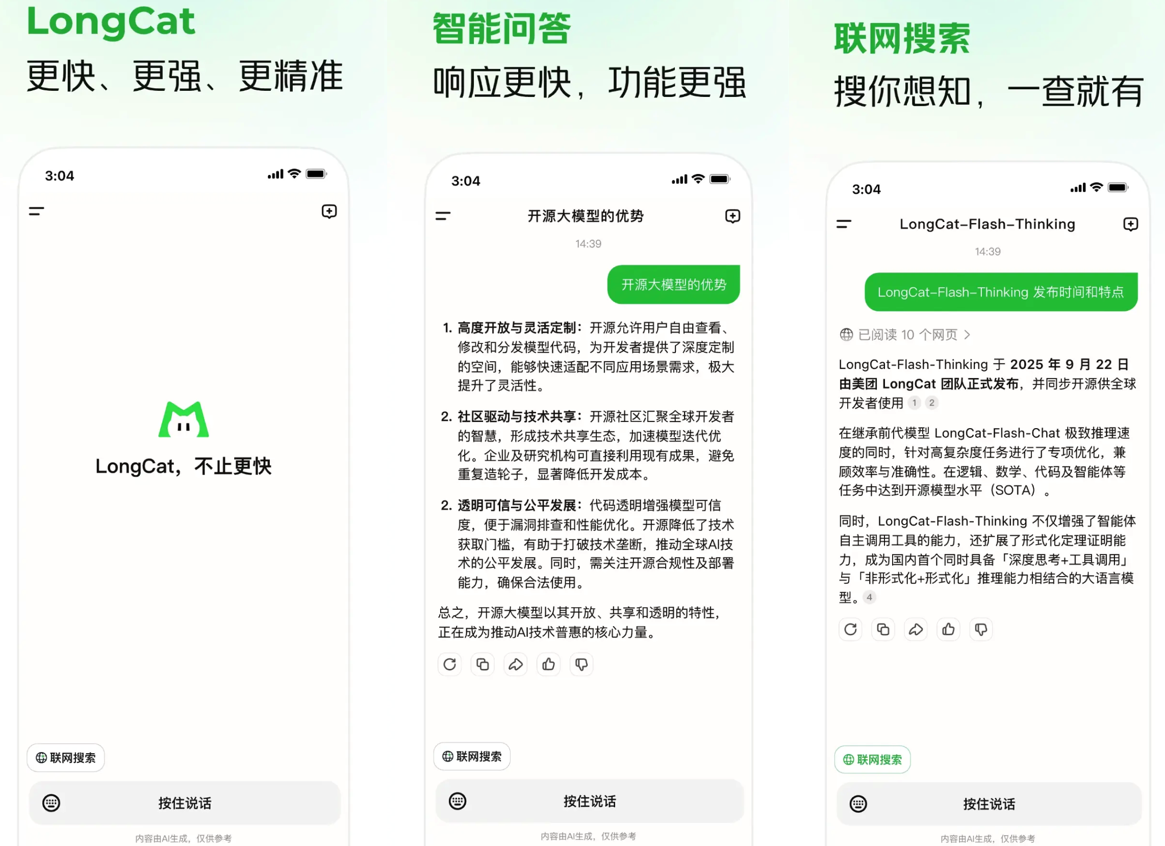 美团 LongCat 大模型官方 App 发布,支持联网搜索、还可以发起语音通话