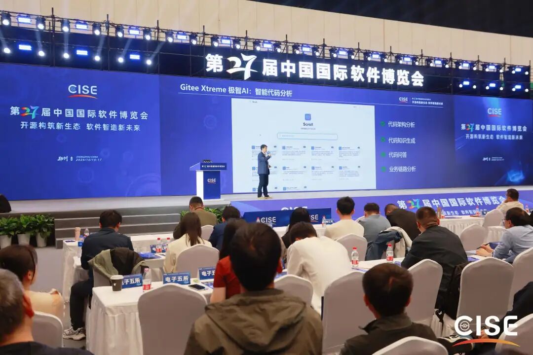 10月16日,开源中国郑州研发中心总经理常毅受邀出席第27届中国国际软件博览会「人工智能+软件」分论坛并发表演讲。常毅围绕《智能 DevOps,企业级 DevOps 全域智能体系》,系统介绍了 Gitee 在企业智能研发领域的探索与实践,全面展示了以「Gitee DevOps + Xtreme 极智 AI」为核心的智能化研发体系。