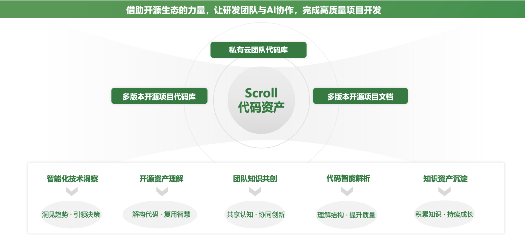 Gitee Scroll 通过大模型自动提取项目的架构、逻辑与知识全景,生成可阅读、可问答、可推理的「项目理解视图」,不仅提升了开发效率,也真正实现了团队知识的沉淀与复用。