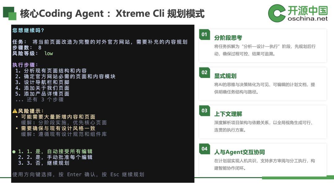 相比传统 AI 辅助编程,Gitee 自研的 Xtreme Cli 核心智能体已迈向更高阶段:它不仅能写代码,更能「写项目」。
