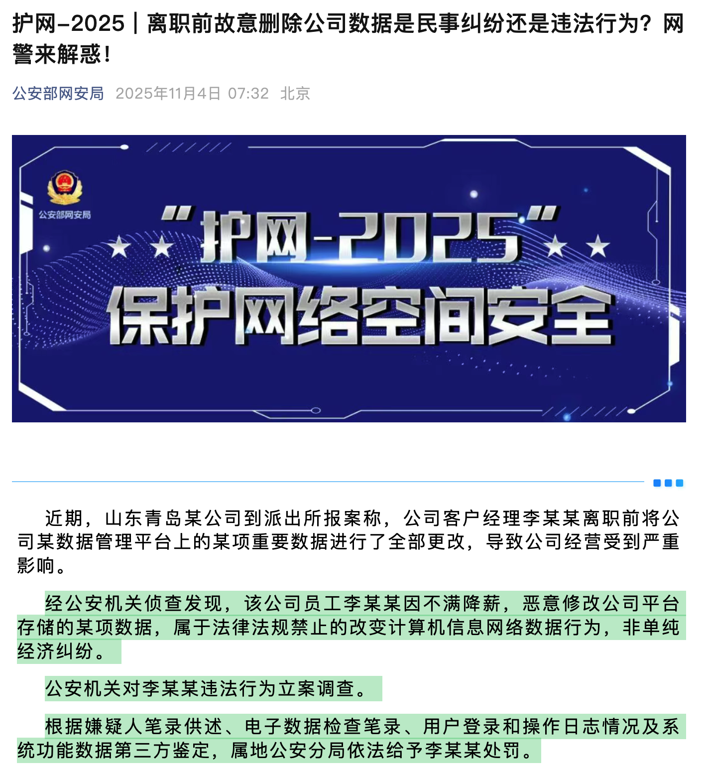 公安部网安局今日发文,通报了近日发生的一起被网友戏称为“删库跑路”类型的违法案例。
