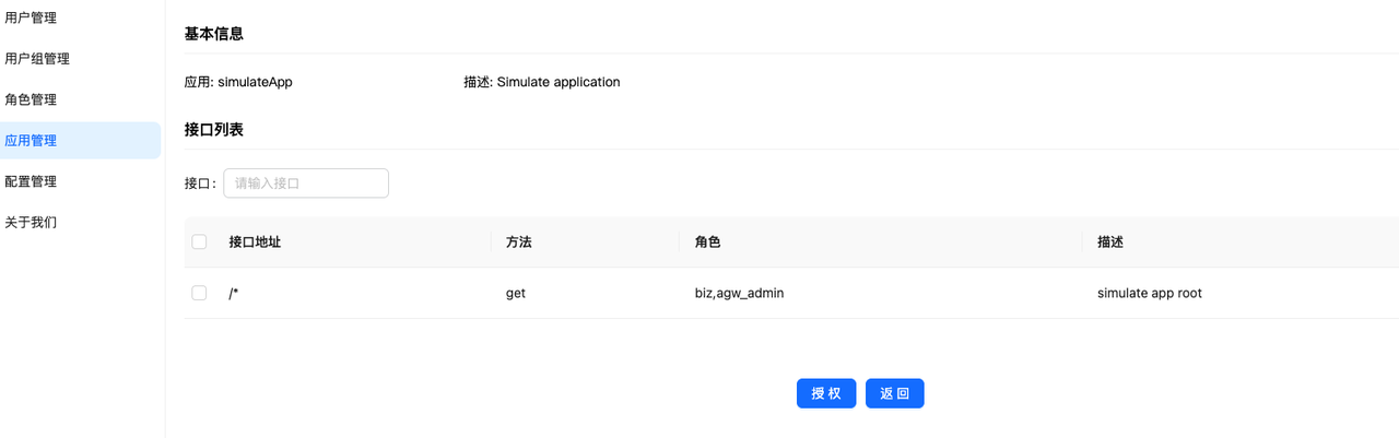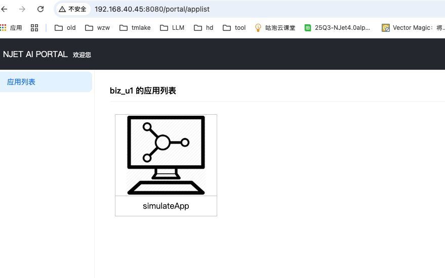 如上图所显示,模拟应用部署后,请参考 https://njet.org.cn/cases/njet_portal/ 对模拟应用完成授权,用户关联。