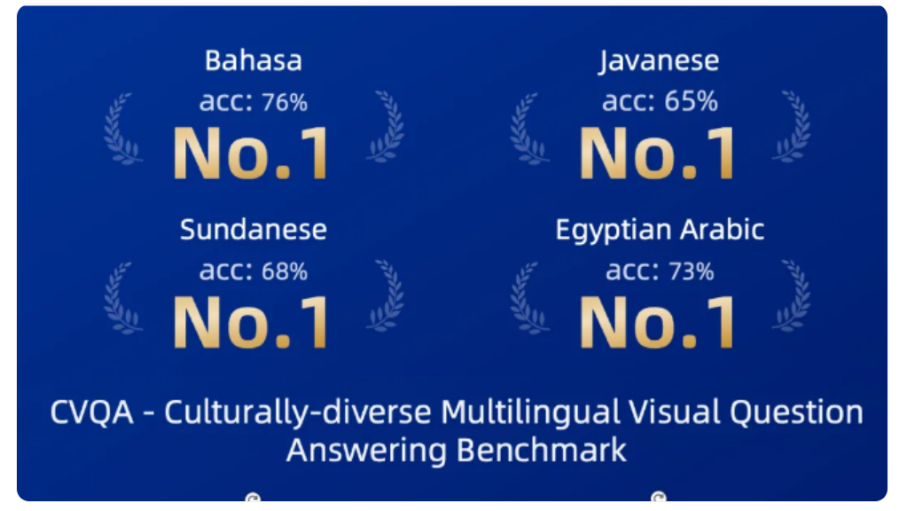 根据测试结果,与同等规模的开源模型相比,该框架在主流多语言视觉问答(Multilingual Visual Question Answering, VQA)基准测试中准确率提升了约9.5%,在部分任务中甚至优于 GPT-4o 和 Gemini-2.5-flash 等国际主流闭源模型,获得评测总分第一。