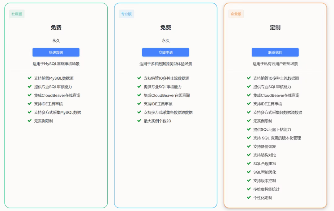 社区版:轻量级 MySQL 开发治理工具,满足个人和小团队的基础 SQL 开发需求。