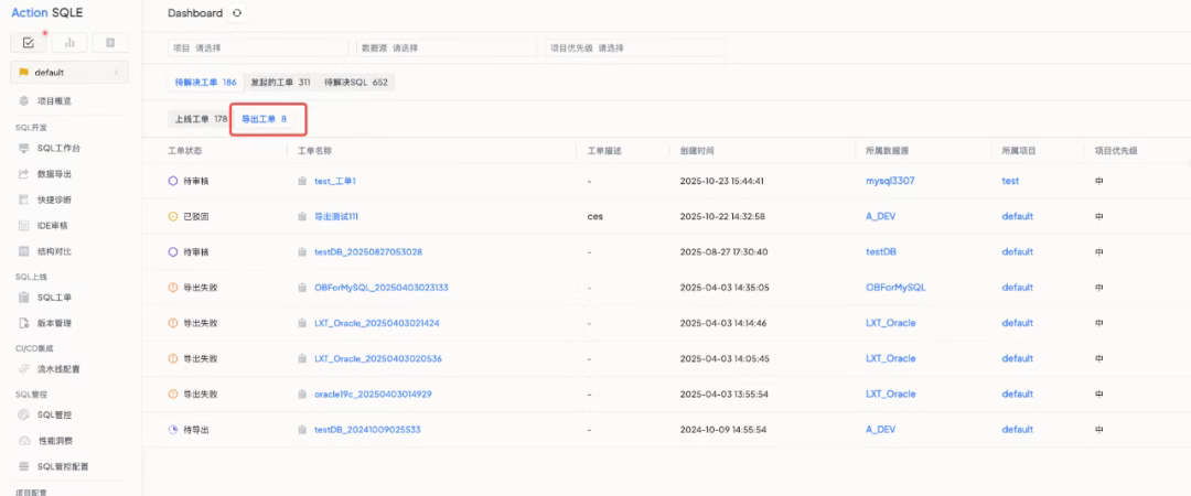 我们为你 把所有项目的“数据导出工单”全部汇集起来,在你的 Dashboard 首页用一个 专属卡片 来统一展示。