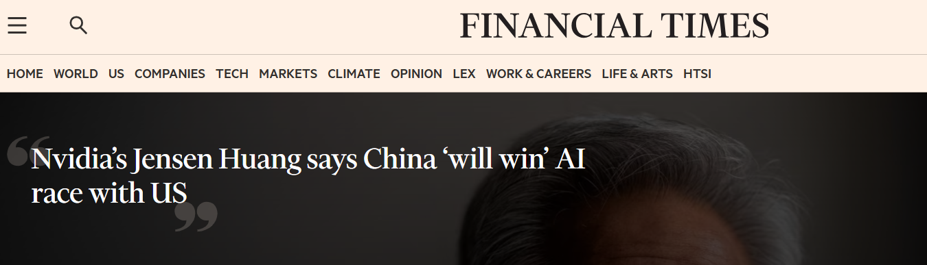 黄仁勋:“中国将赢得人工智能竞赛”