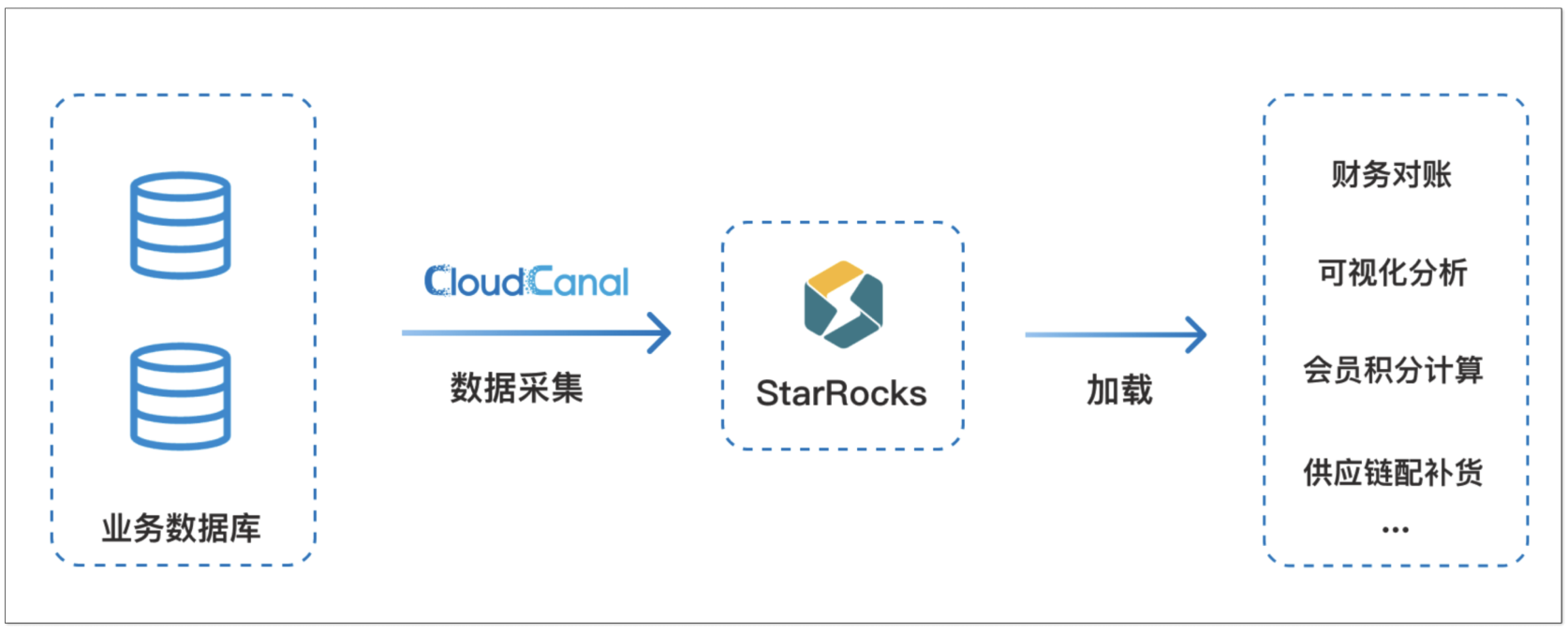 为支撑集团级的实时分析与精细化运营,2022 年,在对多种方案进行评估后,百草味最终选择使用 CloudCanal 作为核心数据同步工具,将 MySQL 等关系型数据库的数据同步到 StarRocks,构建统一的数据分析体系。