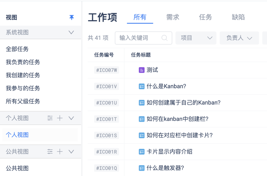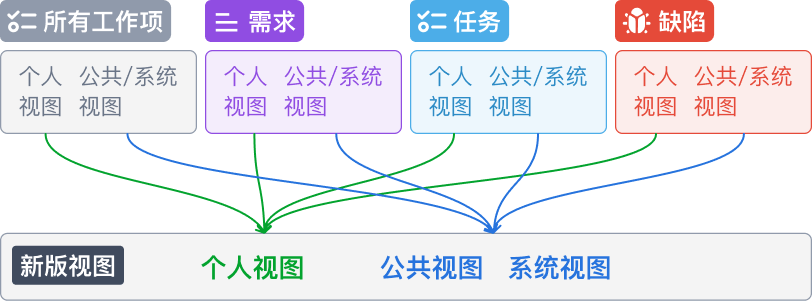 过去在切换「需求 / 任务 / 缺陷」类型时,视图常随之变更,容易造成使用混乱与干扰。本次更新中,工作项的视图入口现已合并统一,分为系统视图、个人视图、公共视图,为你带来更流畅的查询与操作体验。