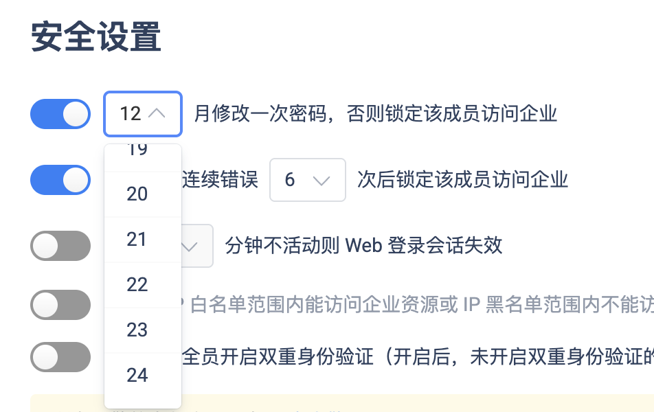 企业开启密码修改周期设置后,到期前7天与到期当天会分别发送提醒。