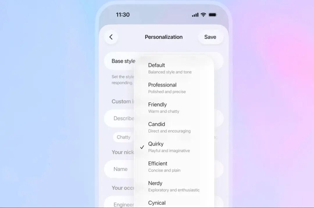 此外,OpenAI还推出了八大可选对话风格和实时个性化设置功能,用户可通过滑块调节回答简洁度、温暖度等细节。