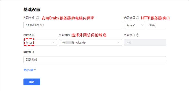 打开花生壳客户端后,点击“添加映射”。在映射类型中选择HTTPS映射,填写内网主机地址为本机在局域网中的IP,例如192.168.1.10,端口填写8096。