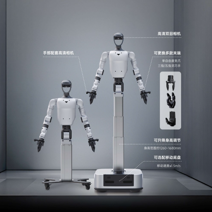 作为该方案的基础硬件,G1-D机器人专为高效数据采集而设计,其身高范围约1260mm至1680mm,头部配备高清双目相机,手部也搭载了高清相机,确保多维度、高质量的视觉数据捕获。