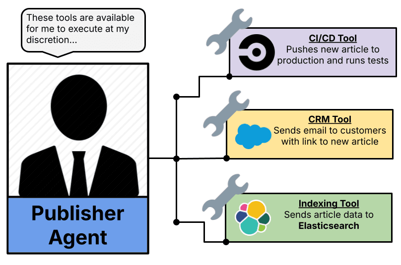 在我们的新闻室示例中,各个 agent 使用 MCP 服务器访问所需的工具和数据: