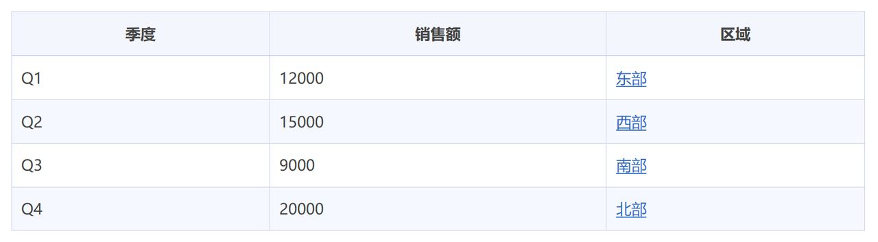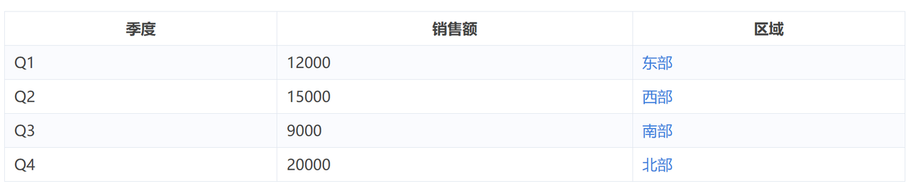 <caption class="visually-hidden">2025 年各季度按区域的销售额(单位:元)</caption>