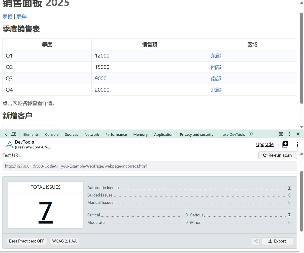由于上述插件仅利用axe工具检测了无障碍问题,开发者需要逐一修复这些问题。