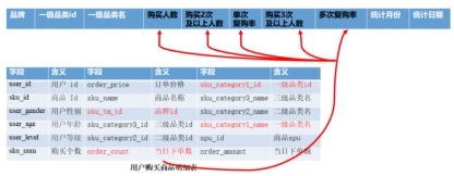 | 列名 | 数据类型 | 注释 | | ---- | ---- | ---- | | user_id | STRING | 用户ID | | user_gender | STRING | 用户性别 | | user_age | STRING | 用户年龄 | | user_level | STRING | 用户等级 | | buyer_nick | STRING | 买家昵称 | | mord_prov | STRING | 地址 | | login_count | BIGINT | 当日登录次数 | | cart_count | BIGINT | 加入购物车次数 | | order_count | BIGINT | 当日下单次数 | | order_amount | DECIMAL(16, 2) | 当日下单金额 | | payment_count | BIGINT | 当日支付次数 | | payment_amount | DECIMAL(16, 2) | 当日支付金额 | | confirm_paid_amt_sum_1d | DOUBLE | 最近一天订单已确认收货的金额总和 | | order_detail_stats | ARRAY<STRUCT<sku_id:STRING, sku_num:BIGINT, order_count:BIGINT, order_amount:DECIMAL(20, 2)>> | 下单明细统计 |