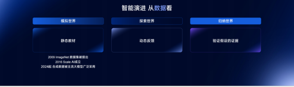但到了探索世界、强化学习阶段,需要的是动态反馈数据。强化学习要“想法—决策—行动—反馈”完整链条,需要大量动态数据才能真正训练出探索能力。