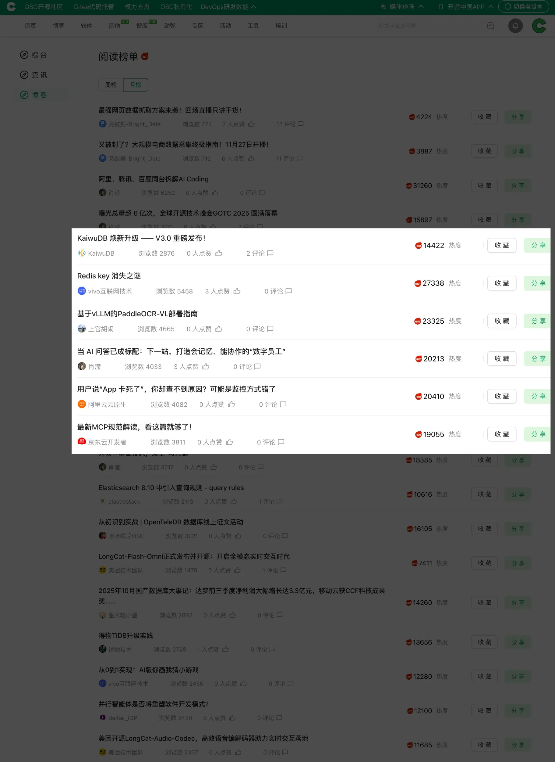 通过 AI 智能筛选与社区热度分析,OSCHINA「阅读榜单」自动汇总最值得读的技术文章、开源项目解读、工程实践经验以及行业趋势等优质内容。