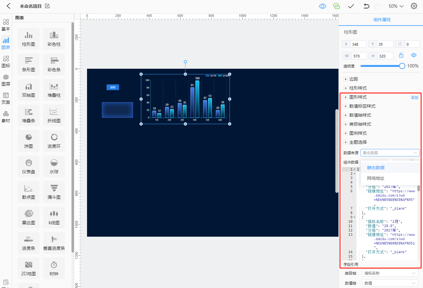 本项目使用Vue3 + Vite + Axios + Element-Plus + ECharts + moveable +GoFrame开发,可离线运行,也可以配合后端服务器运行,可自定义各种图表,例如柱状图,曲线图等用于展示API接口数据。