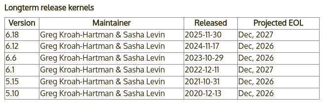 官方维护至少持续到 2027 年 12 月。这意味着未来数年内,各大发行版、服务器环境与企业用户都能放心采用这一版本作为稳定基础。
