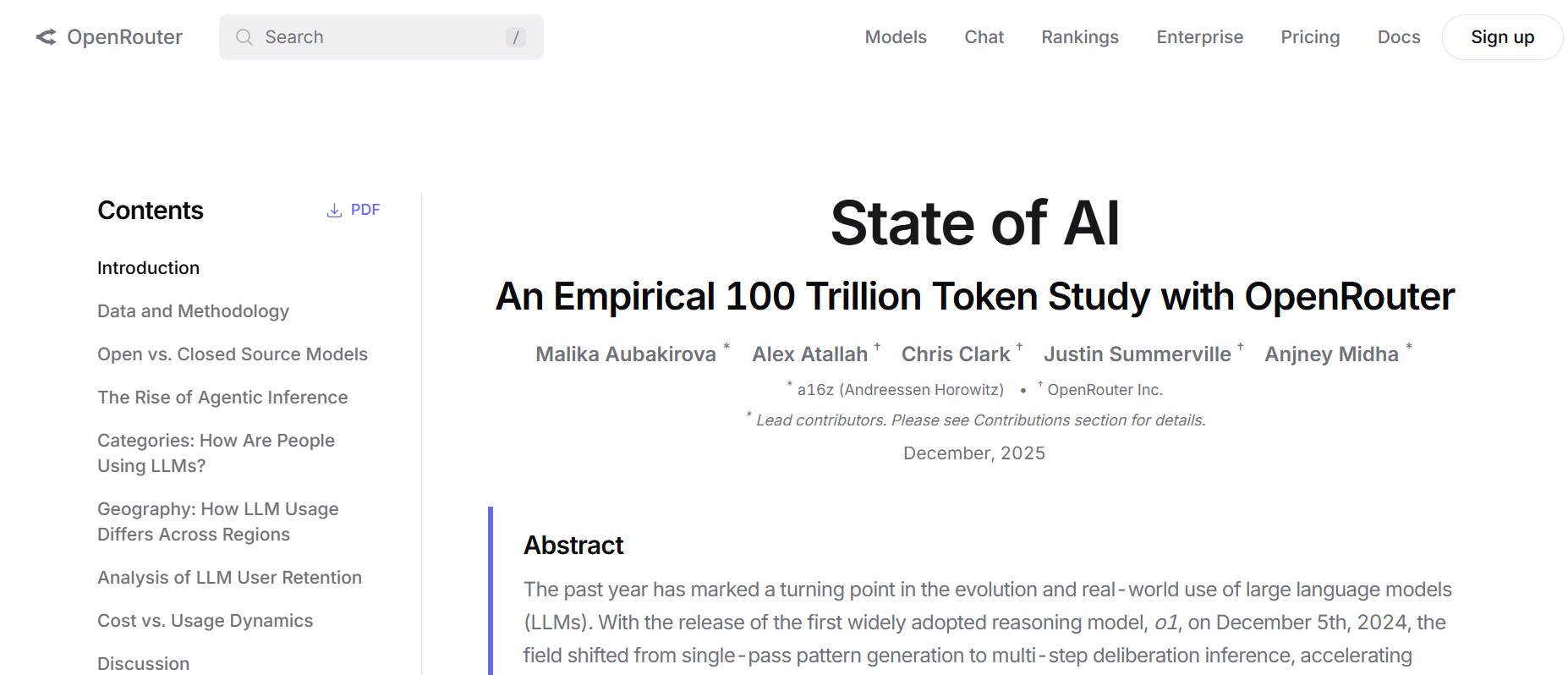 OpenRouter 发布 100 万亿 token AI 使用状态报告