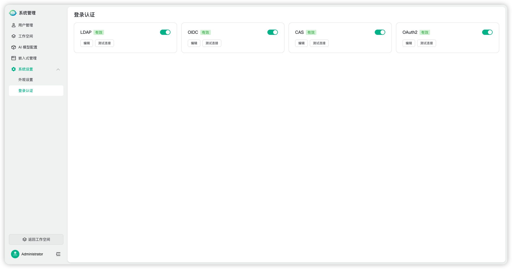 SQLBot v1.4.0 版本在 X-Pack 增强包中新增支持 LDAP、OAuth2、OIDC 身份认证机制,为企业级用户提供了更加灵活和安全的统一身份认证解决方案。该功能适合已经部署了 LDAP、OAuth2、OIDC 认证服务的企业用户,可以快速将 SQLBot 纳入到企业的统一身份认证体系中,实现与 OA、内部应用等其他应用系统的单点登录互通,有效提升整体信息化管理水平。