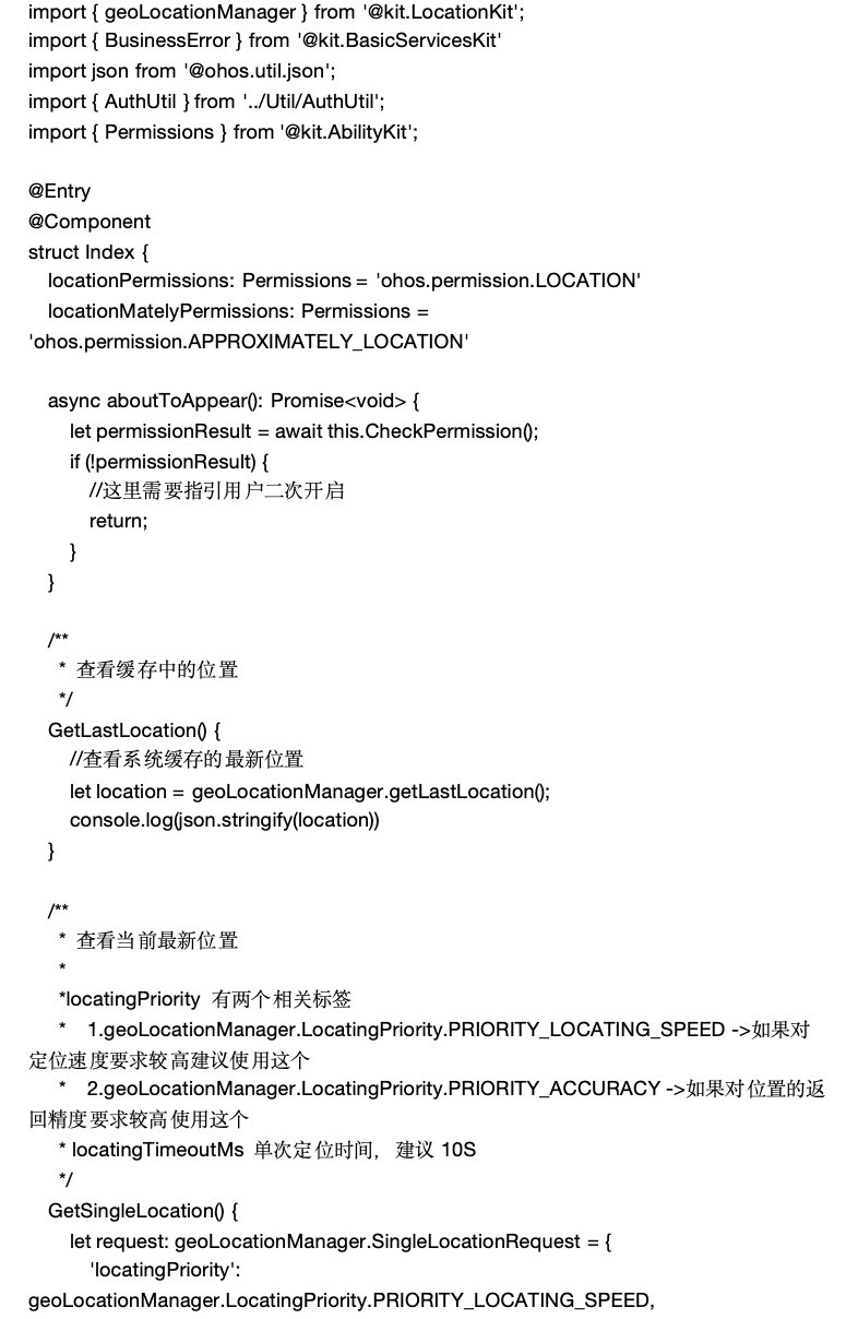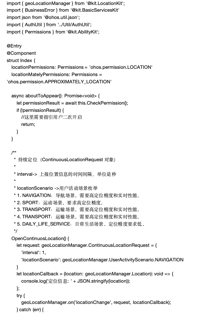 如果应用需要在后台运行时访问设备位置,还需要申请ohos.permission.LOCATION_IN_BACKGROUND权限。