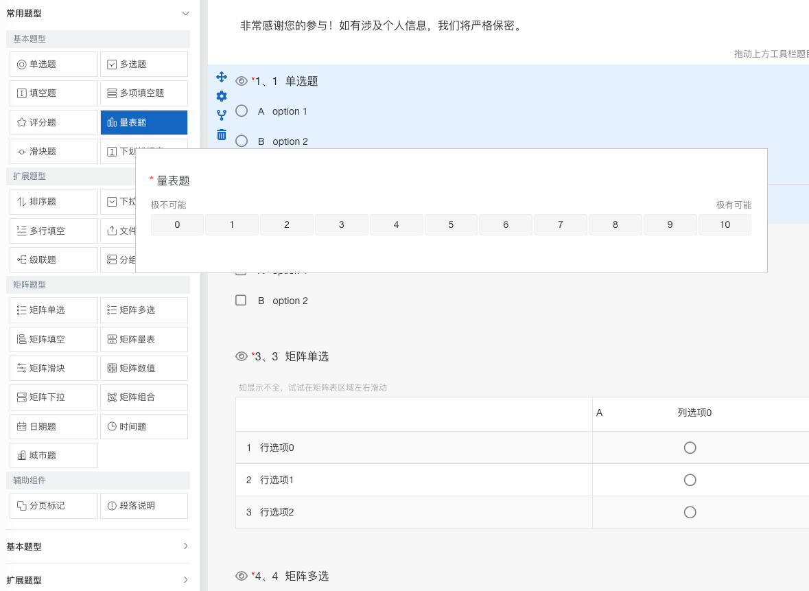 此外,还优化了问卷编辑页面,升级编辑器图标,增加题型预览功能;