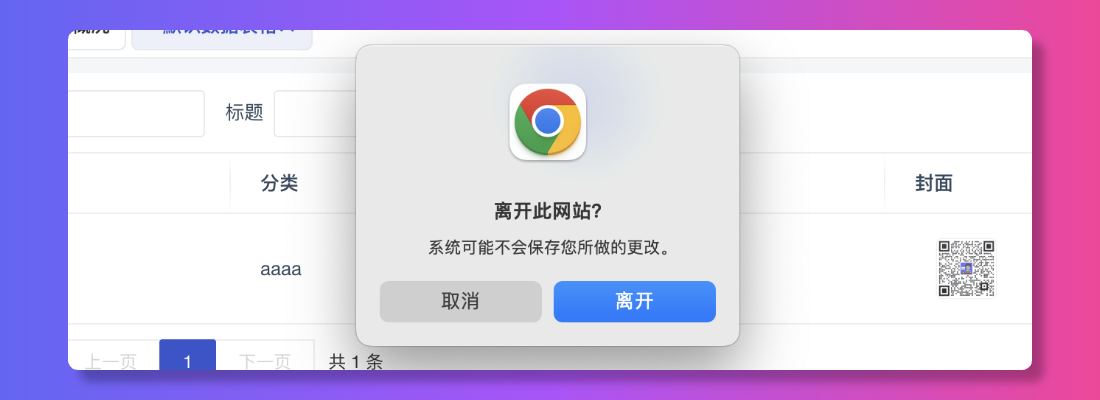 [新功能] 后台管理多标签页打开页面刷新/返回时二次确认提醒,防止数据丢失