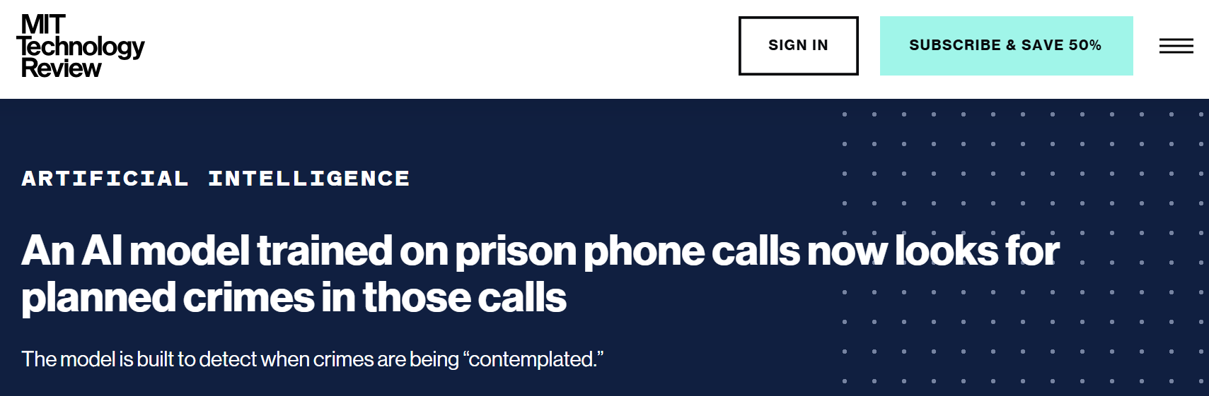 近年来,美国一家名为 Securus Technologies 的电信公司,秘密地利用监狱内囚犯的电话和视频通话记录,构建其专有的人工智能模型。根据《麻省理工科技评论》的报道,Securus 自2023年起开始开发其 AI 产品,而其收集的通话数据则早在更早的时间就已积累。这些数据来源于各类监狱,从地方监狱到长期监禁的监狱,甚至包括移民和海关执法局的拘留中心。