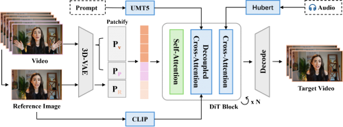 音视频帧率解耦,杜绝细节丢失:主流视频生成模型采用了“1+4N”时序压缩机制,为实现与与视频帧的严格同步,SekoTalk对音频处理分支进行了精细优化。它创新地将视频帧率(16-25fps)与语音特征帧率(50fps)解耦,避免了传统下采样放到带来的口型细节丢失,使得音频可以和任意帧率的视频在时序上对齐,保证音频与画面的高质量同步。