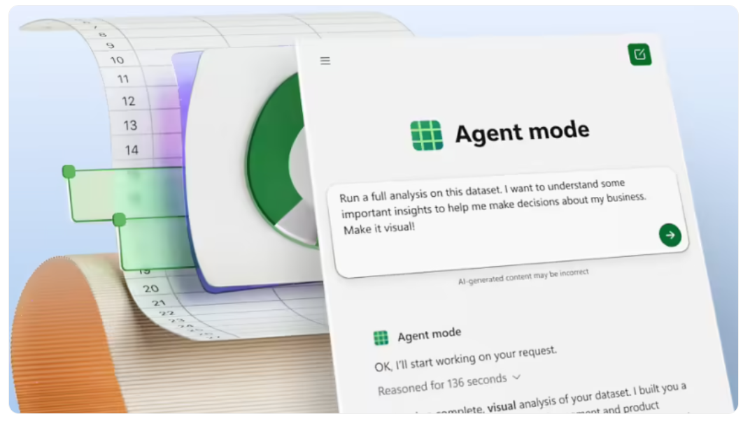 微软发布了一项更新,宣布网页版 Excel 推出全新的 “智能体模式”(Agent Mode),此功能主要面向 Microsoft365Copilot 商业用户及 Premium 订阅者。微软表示,这次升级标志着 Excel 智能化进程的一次重大飞跃,AI 助手将不再仅限于简单的问答,而是能够像真正的数字助手一样,深入参与复杂的表格处理过程。
