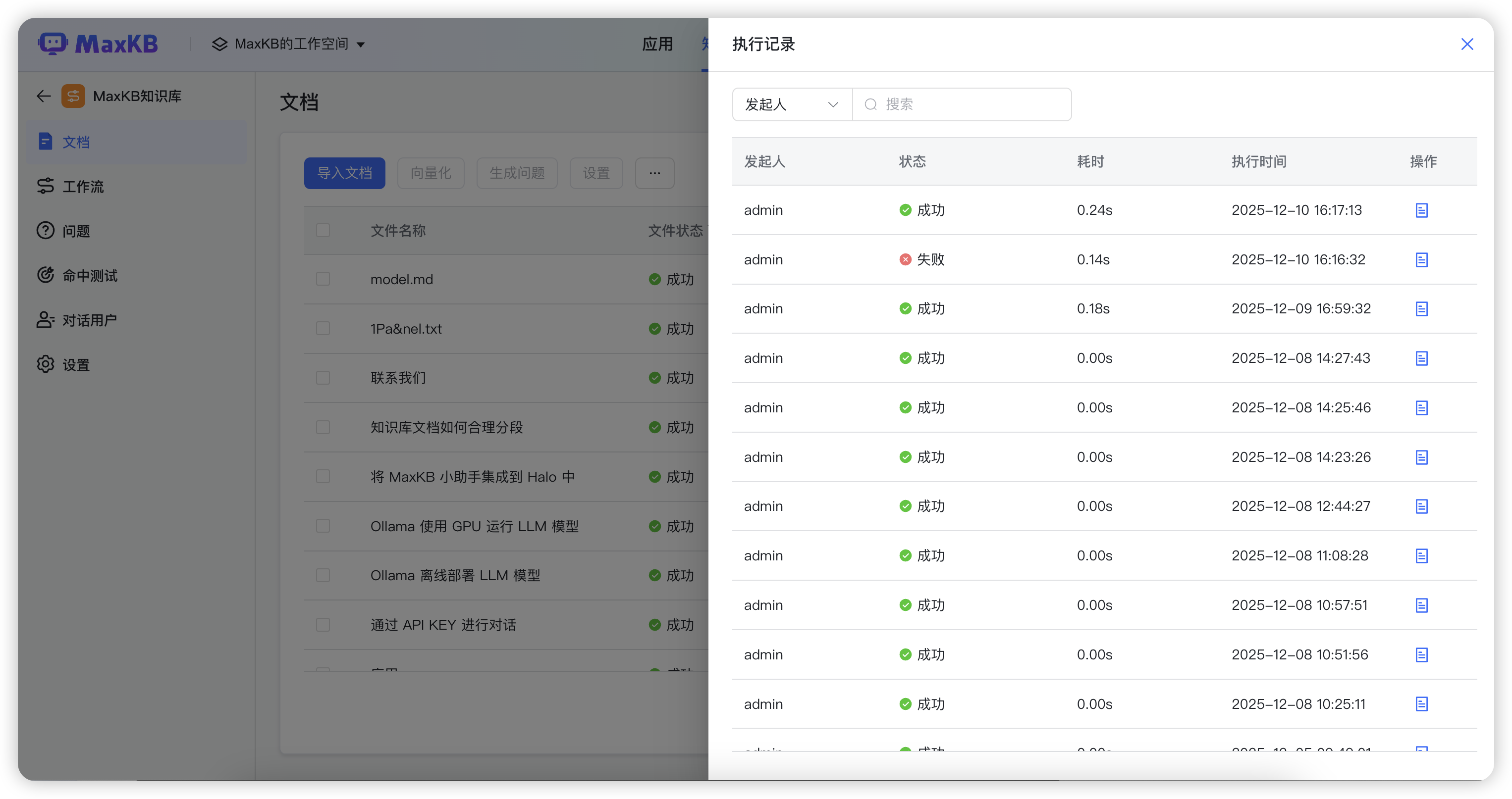▲图 6 工作流知识库的 “执行记录” 对话框