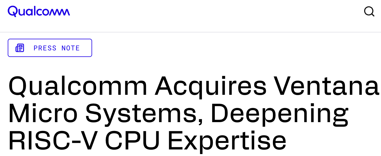 高通宣布收购 RISC-V 初创企业 Ventana 微系统公司
