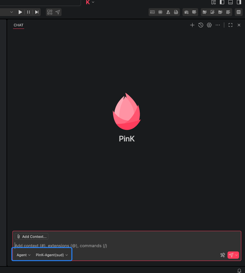 4. 模式切换:调整为 Agent 模式,选择PinK-Agent(sud)。
