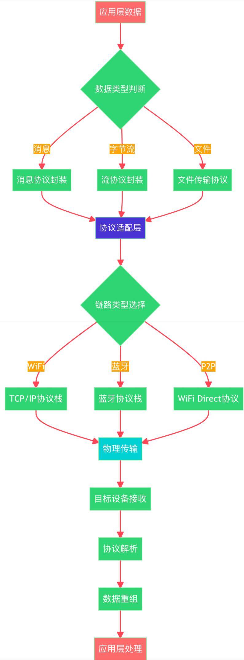 分布式软总线支持多种数据传输方式,包括消息传输、字节流传输、文件传输等,每种方式都针对特定场景进行了优化。