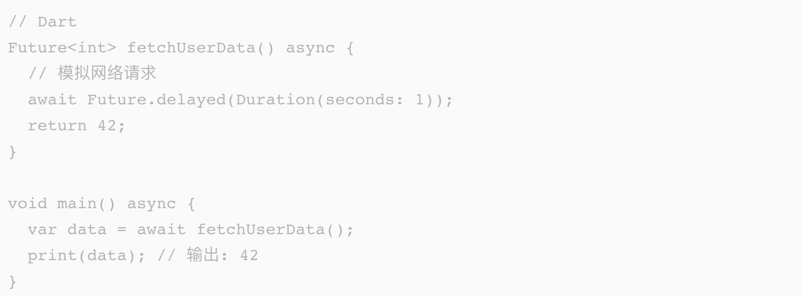 Dart: 使用 async/await 关键字。异步函数返回 Future<T> 类型。