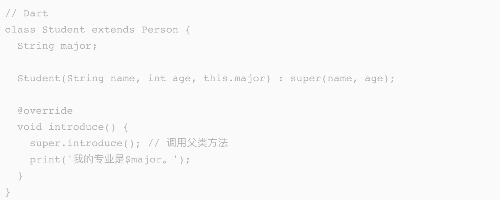 Dart: 使用 extends 继承,使用 super 调用父类构造函数和方法。
