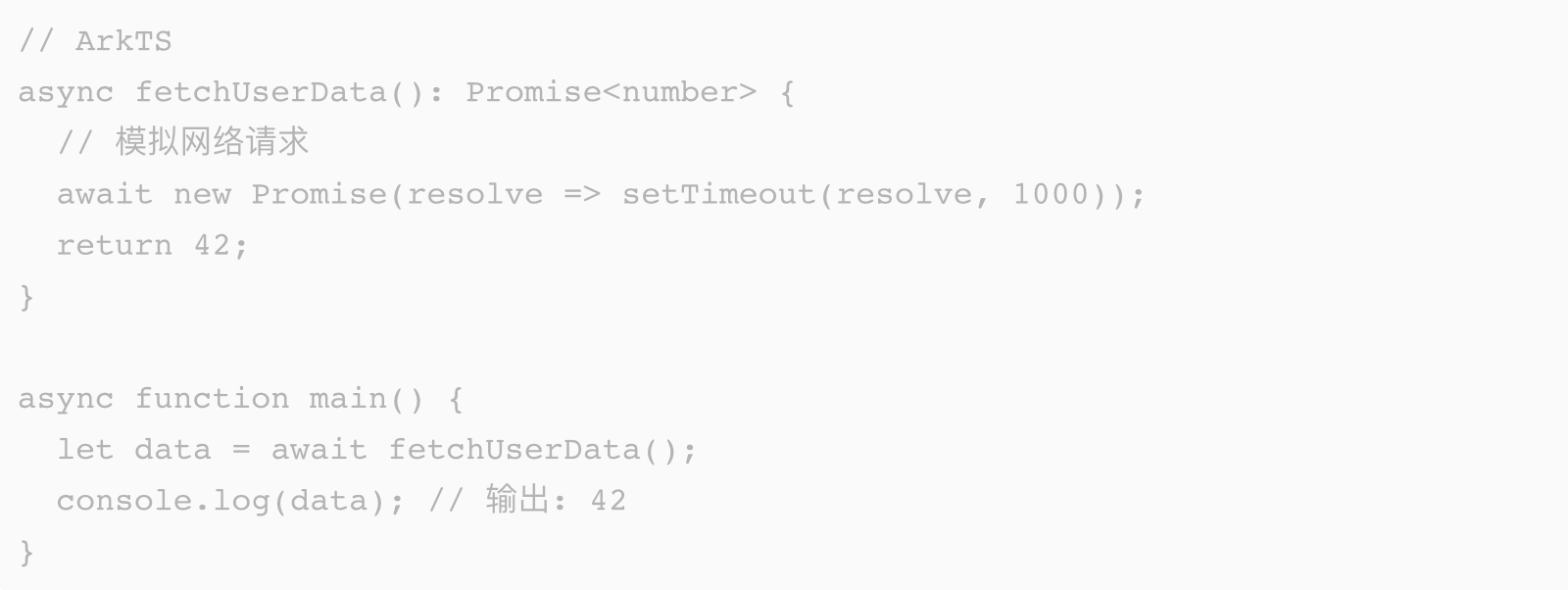 ArkTS: 同样使用 async/await,但返回类型是 Promise<T>。