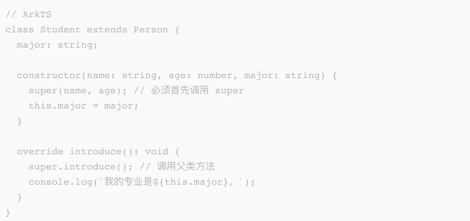 ArkTS: 使用 constructor 关键字定义构造函数。属性通常在构造函数参数中直接声明。