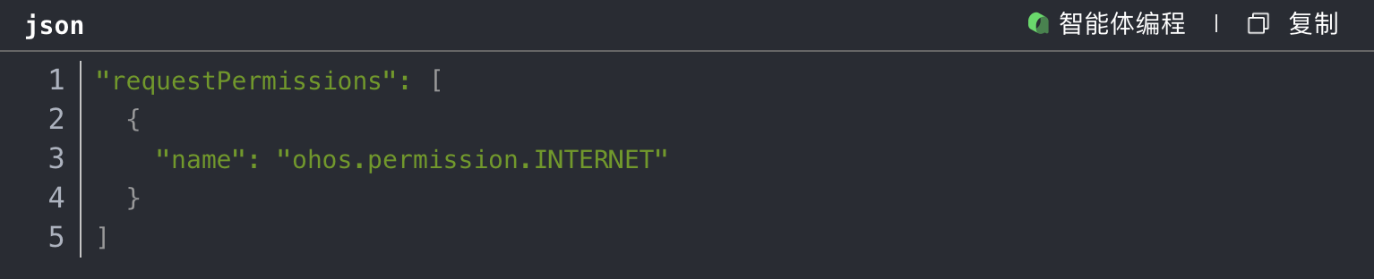 刚开始做网络请求,死活调不通,后来才发现网络权限没配置。要在module.json5里加上: